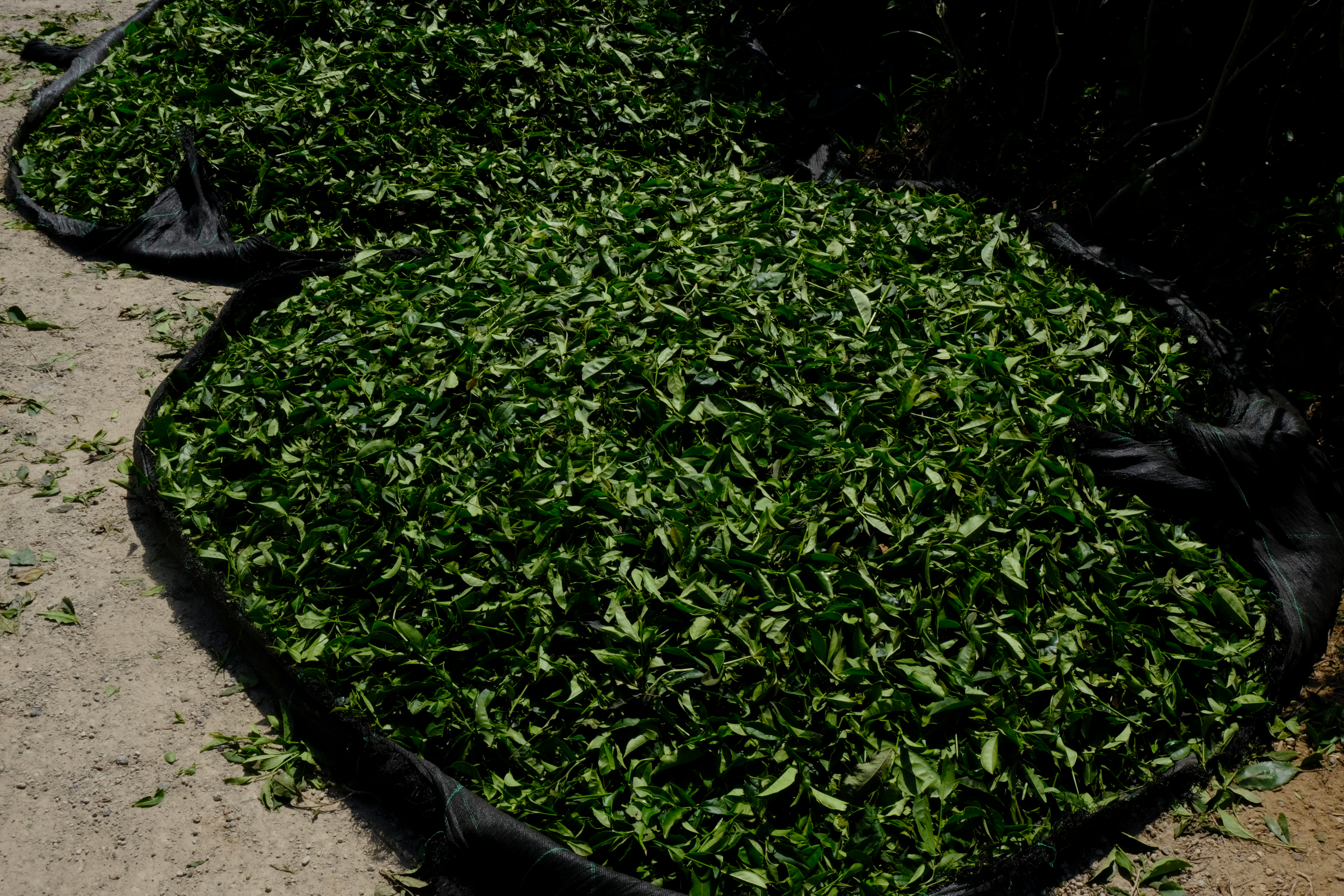 Trois à quatre semaines avant la récolte, les théiers sont protégés du soleil.
